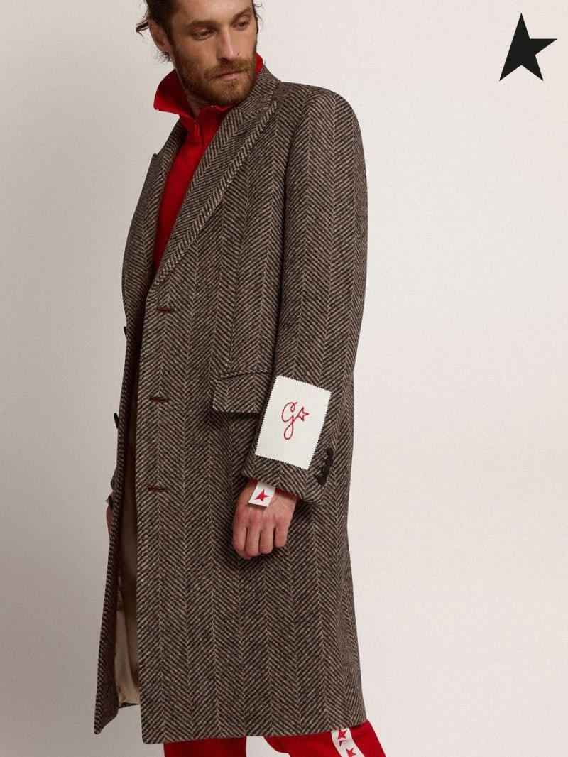 The Goose Golden bailiúchán aonair-breasted cóta i olann le herringbone weave i beige agus antraicít liath Beige dark gray