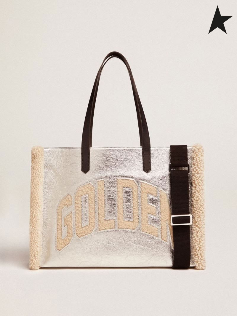 Istočno-Zapadna Kalifornijski torba Golden Goose od srebrno laminirane kože s umetcima od merino vune srebrne boje