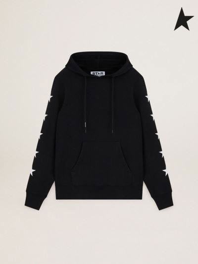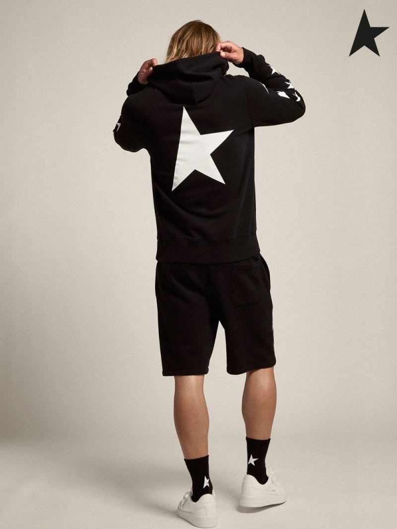 Majica Golden Goose Black iz zbirke Alighiero Star s kontrastnim bijelim zvijezdama Crne boje