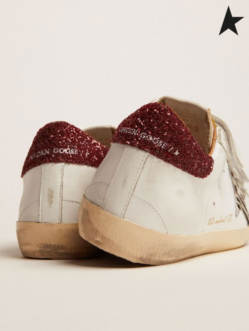 Олдскульные tenisice Golden Goose sa zvijezdom od kože ponija u obliku zebre i crvenim sjajnim каблучным язычком bijele boje