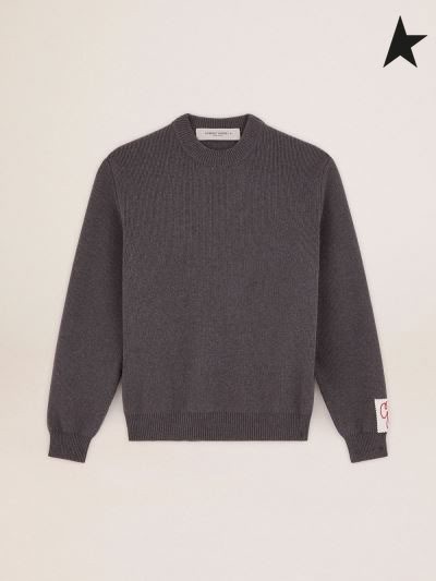 Pulover okruglog izreza Golden Goose Golden collection od tamno sive меланжевого pamuka sa kontrastom bijelim logom na leđima tamno siva