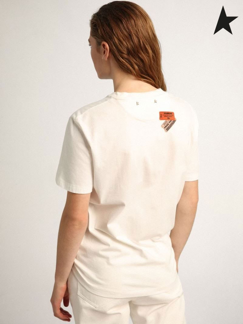 T-shirt Golden Goose White Journey collection s raznobojnom imenom ispis bijele boje