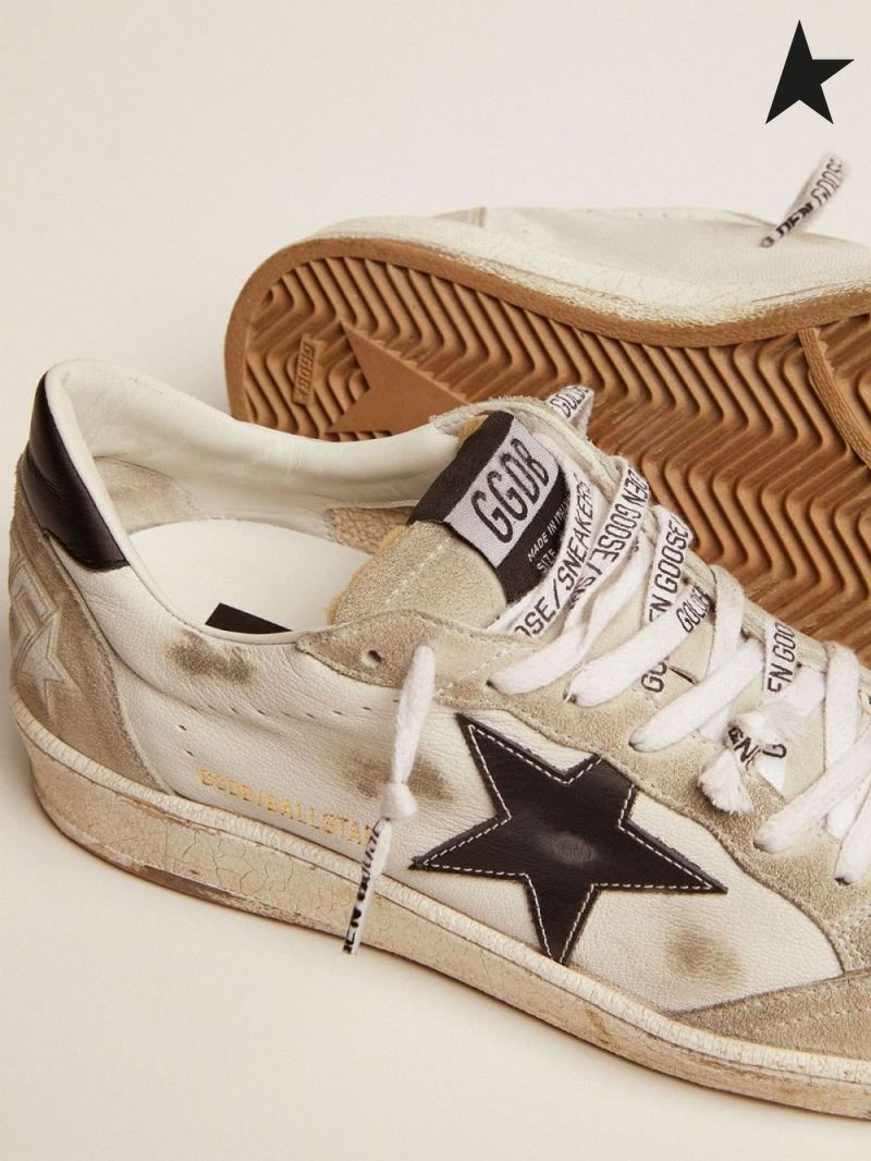 Tenisice Golden Goose Ball Star od bijele kože i льдисто-siva antilopa s crnim kožnim detaljima bijele boje