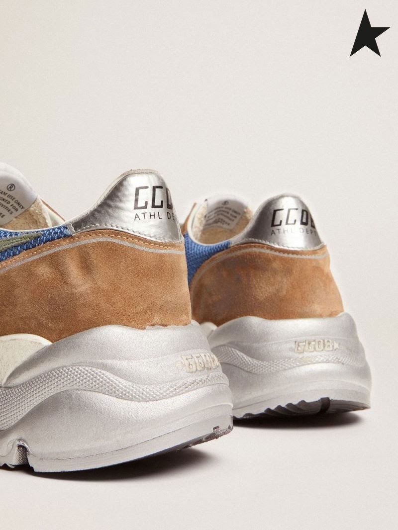 Tenisice Golden Goose na potplatima od svijetlo-plava mreža s замшевыми umetcima je bez boje i замшевой zvijezda u stilu милитари svijetlo plavo crveno-zelene boje