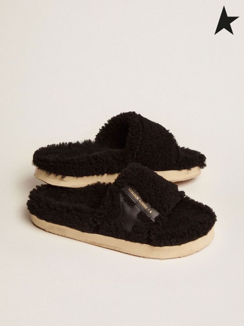 Tenisice Golden Goose Poolstars od crne vune sa zvijezdom od kože ton na ton crna crna