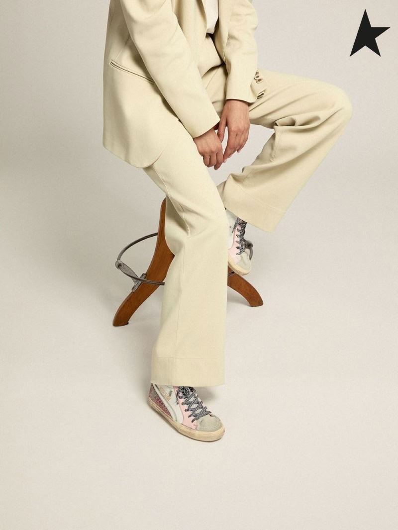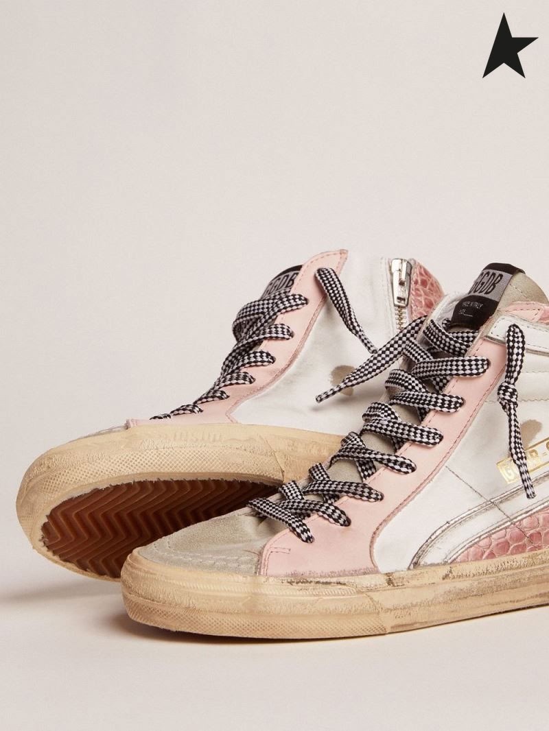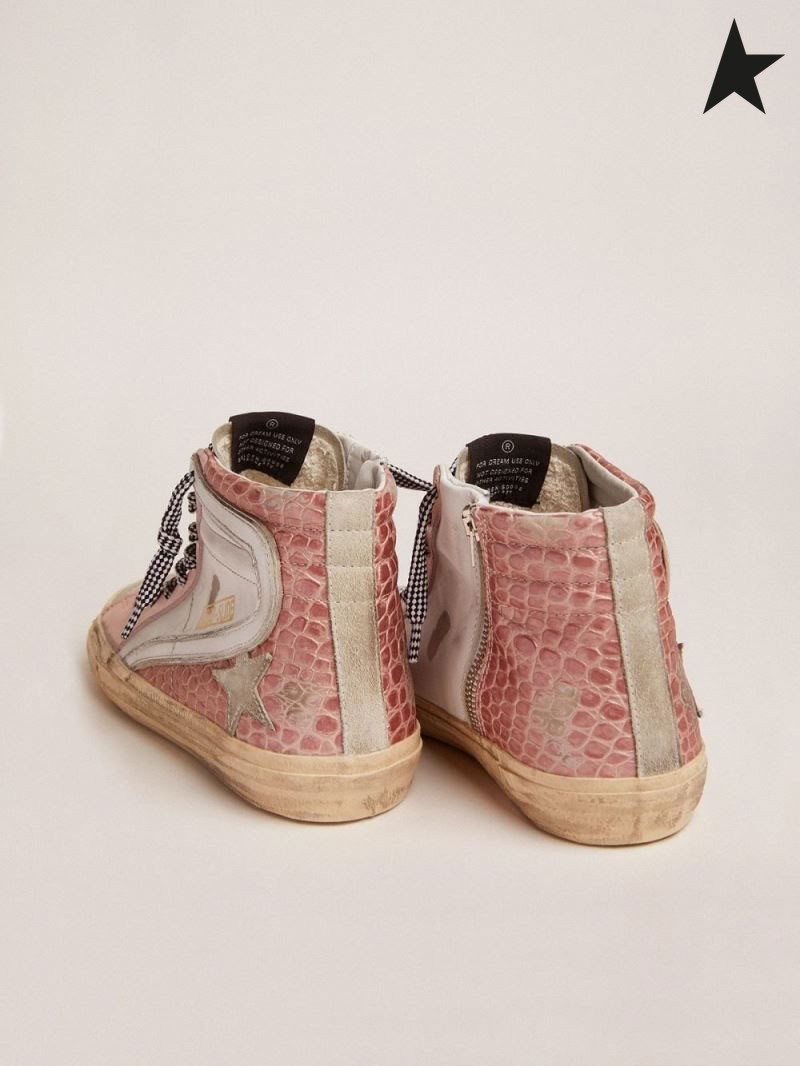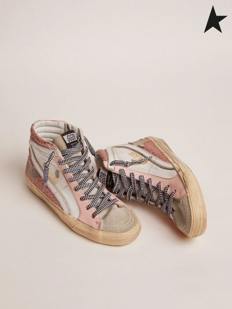 Tenisice Golden Goose s bijele kože i gornjim dijelom od ružičaste kože s крокодиловым po cijeloj površini bijela pink