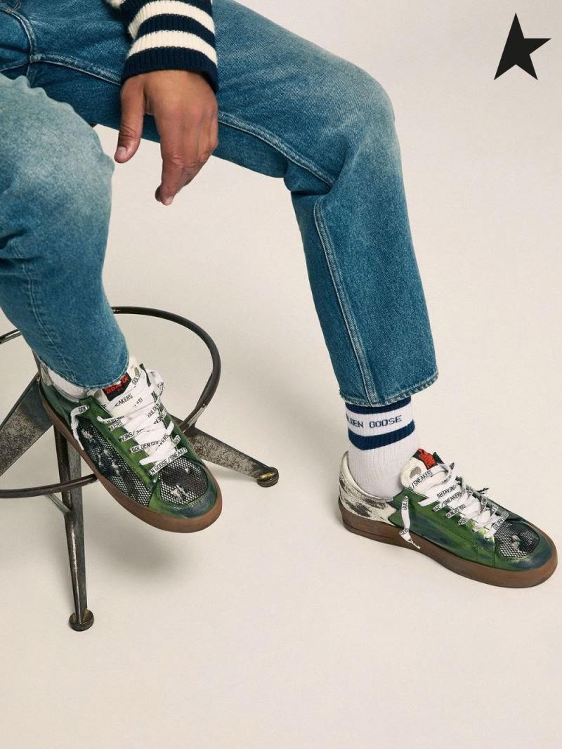 Tenisice Golden Goose Stardan LAB s tamno zelenim gornjim dijelom od kože ponija i bijeli remen za petu od hrskave kože tamno zelena bijela