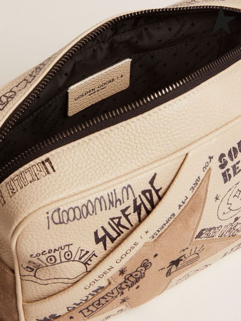Torba Golden Goose Star od белоснежной kože s kontrastnim crnim natpisom i замшевой plavo-siva zvjezdicom white