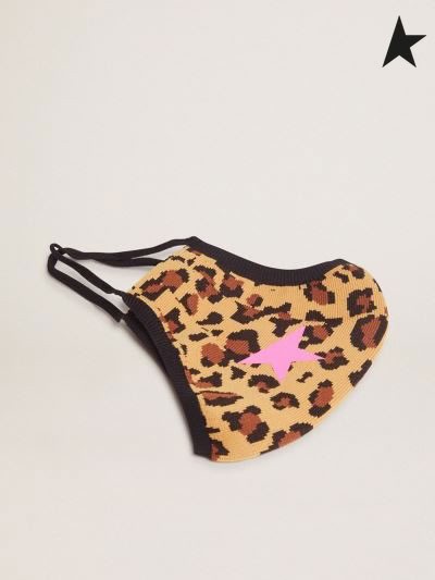 Zlatna maska za lice s леопардовым po cijeloj površini Golden Goose i smeđe leopard fuksija star