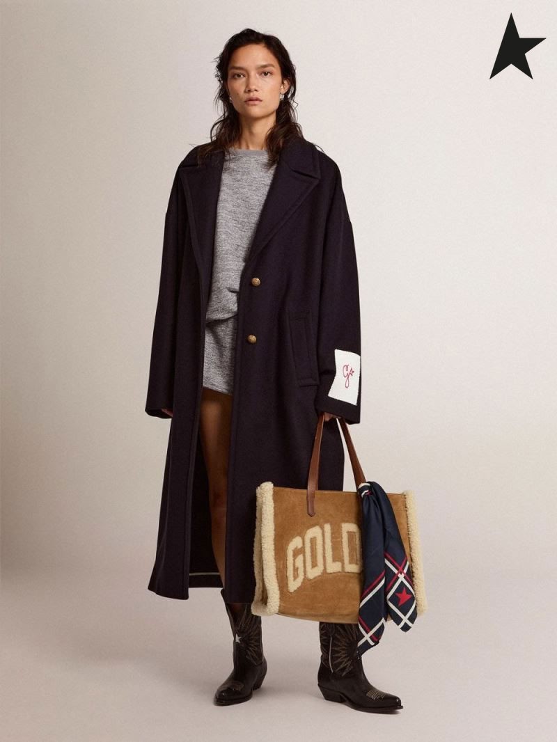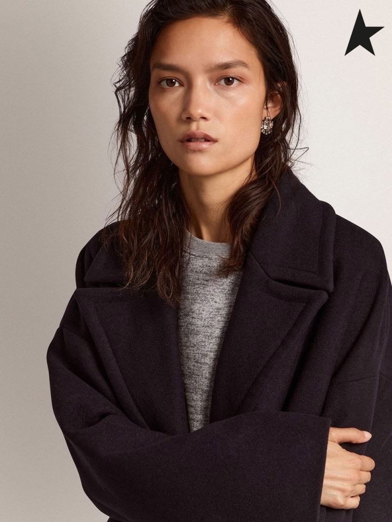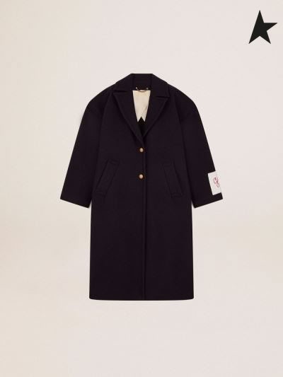 Golden Goose-Arany kollekció egysoros báb, kabát, sötétkék gyapjú, arany színű heraldikai gombok sötét kék