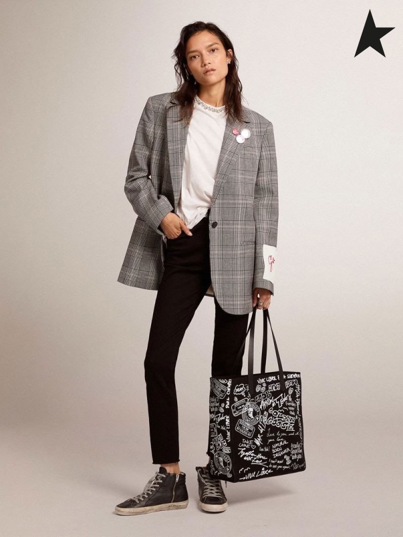 Golden Goose-Arany kollekció egysoros Tom Fiú blézer a szürke, fehér, Walesi Herceg ellenőrizze, szürke, fehér