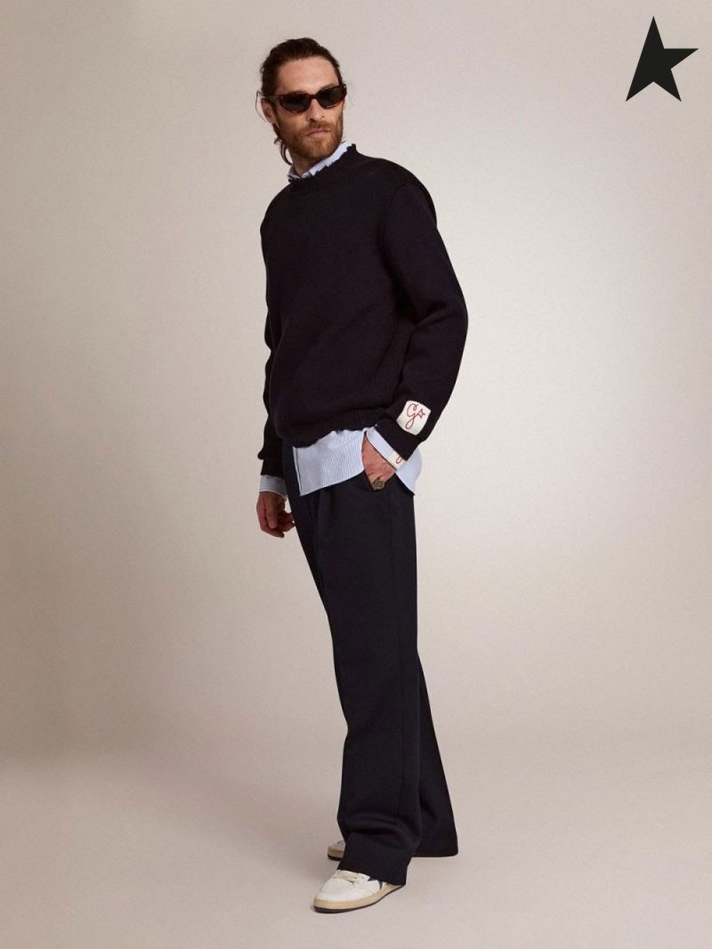 Golden Goose-Arany kollekció kerek nyakú pulóver, sötétkék pamut, egy szomorú kezelés sötét kék