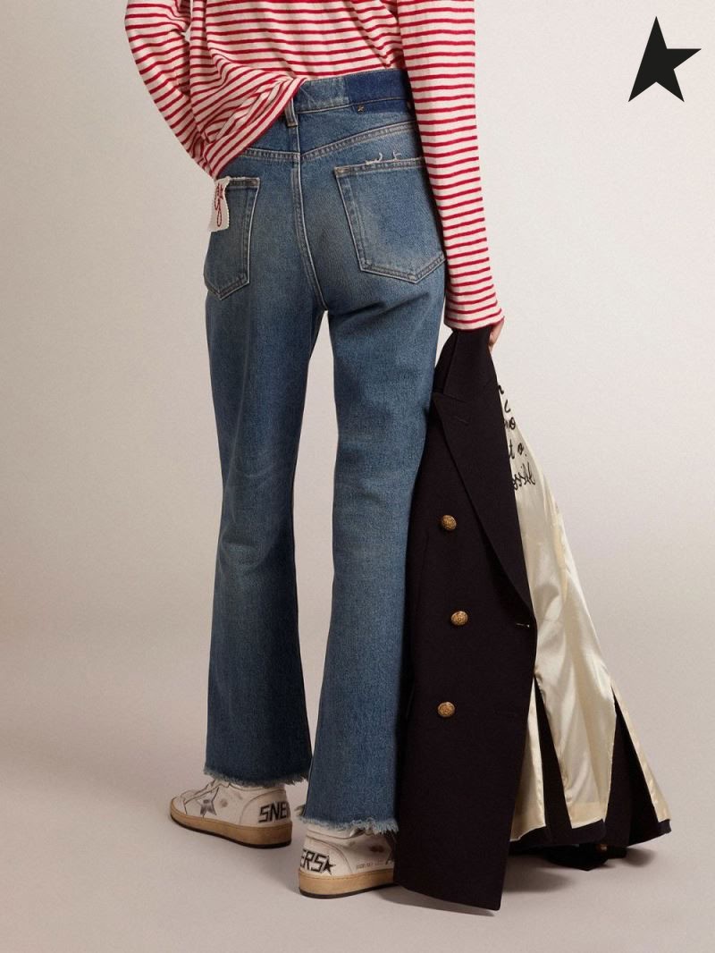 Golden Goose-Arany kollekció vágott lobbant farmer közepes mossa kék