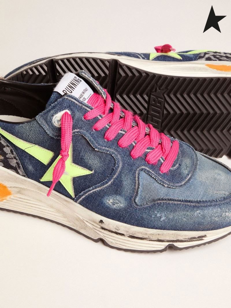 Golden Goose Farmer Futó Cipő Talp cipők, fluoreszkáló sárga csillagot, leopárdmintás póni bőr sarok lap Fluoreszkáló sárga fukszia