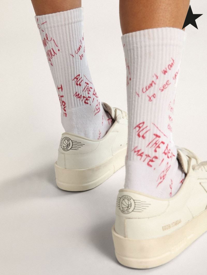 Golden Goose Fehér zokni, piros betűkkel nyomtatott fehér