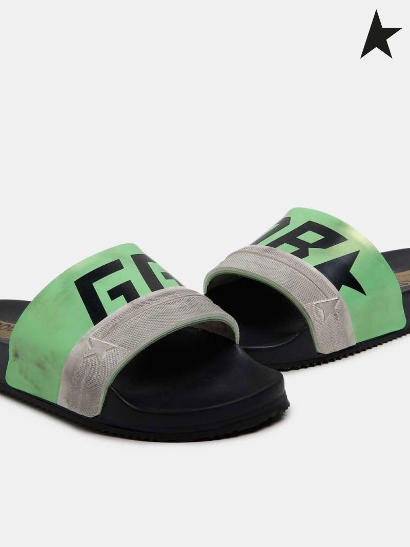 Golden Goose Fekete Poolstars Cipők zöld öv, illetve logó zöld fekete