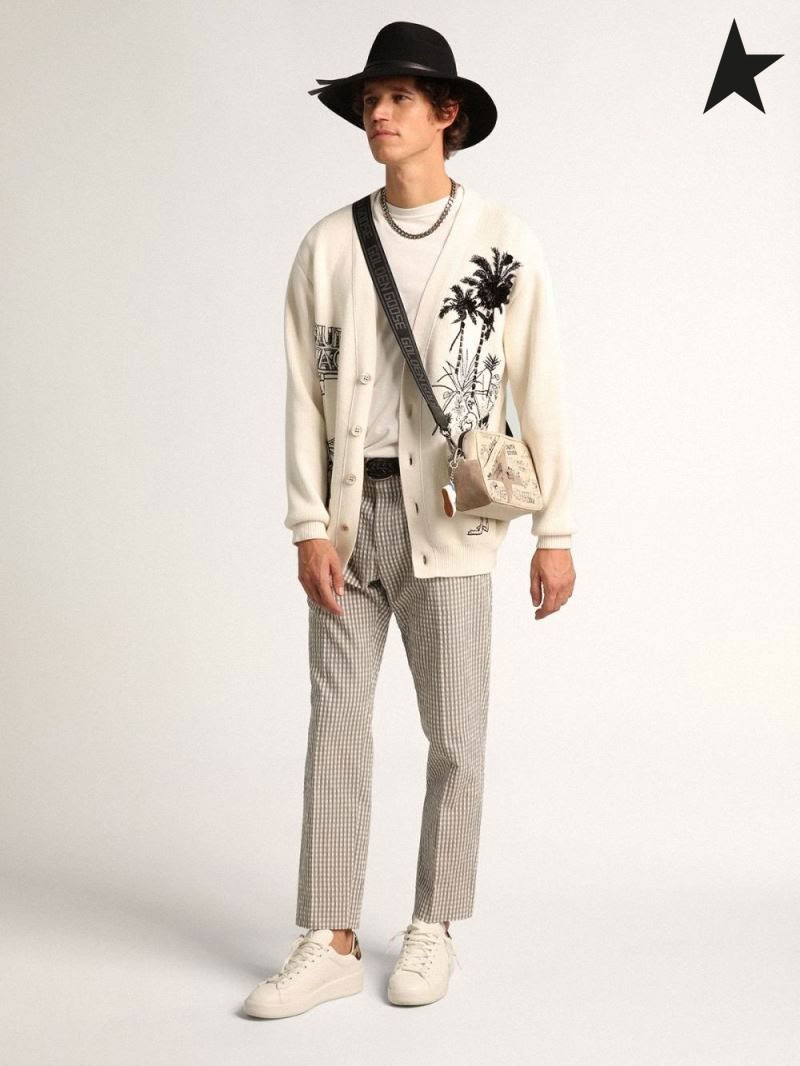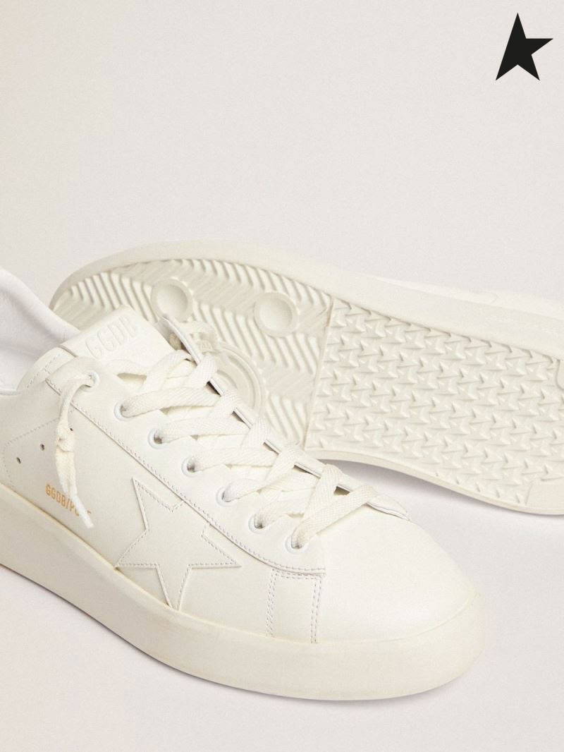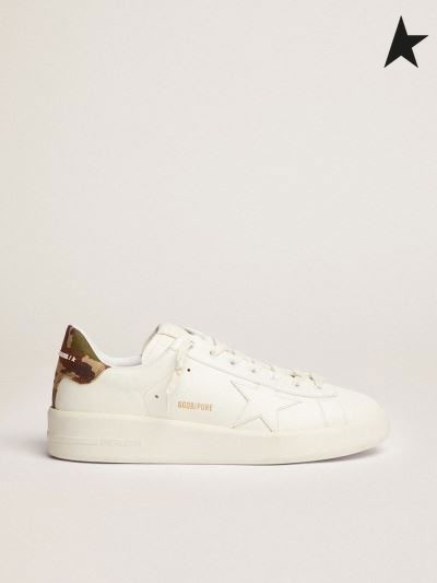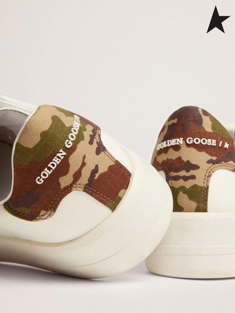 Golden Goose Purestar tornacipő, fehér bőr, a hang-a-tone csillag, zöld sarok lap a camouflage-print ripstop anyagból, fehér