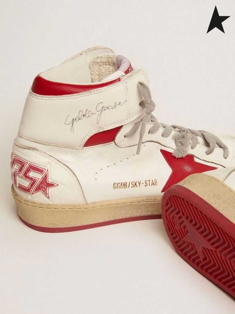 Golden Goose Sky-Star edzőcipőt aláírás a bokám, vörös bőr betétekkel fehér