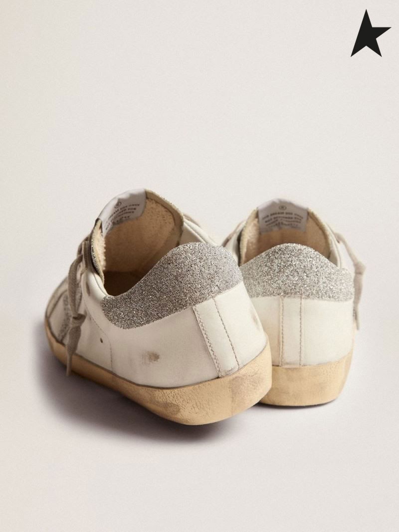 Golden Goose Szuper Csillagos tornacipő, fehér bőr, felső Swarovski kristály lapkák fehér ezüst