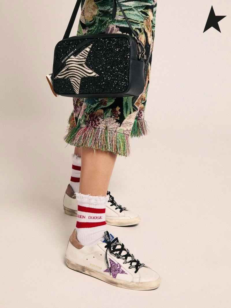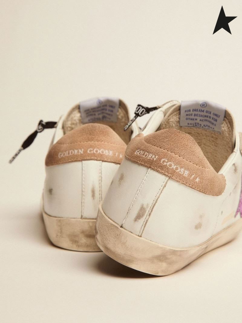 Golden Goose Szuper-Star edzőcipőt a fehér bőr a levendula-színű csillogó fehér csillagos