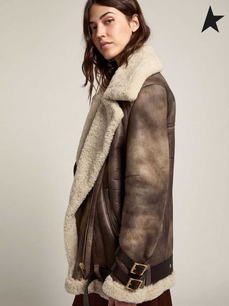 Golden Goose Utazás gyűjtemény Chelsey shearling kabát krém, szürke