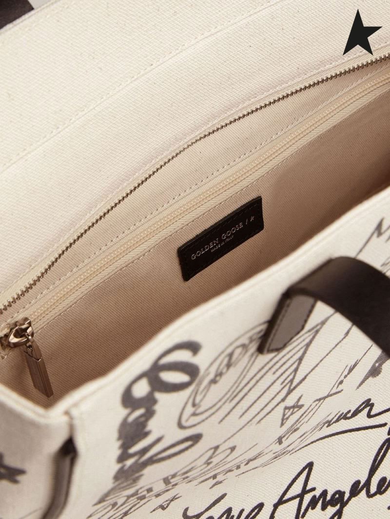 Golden Goose Bianco Nord-Sud della California Borsa con un contrasto nero graffiti stampa bianco