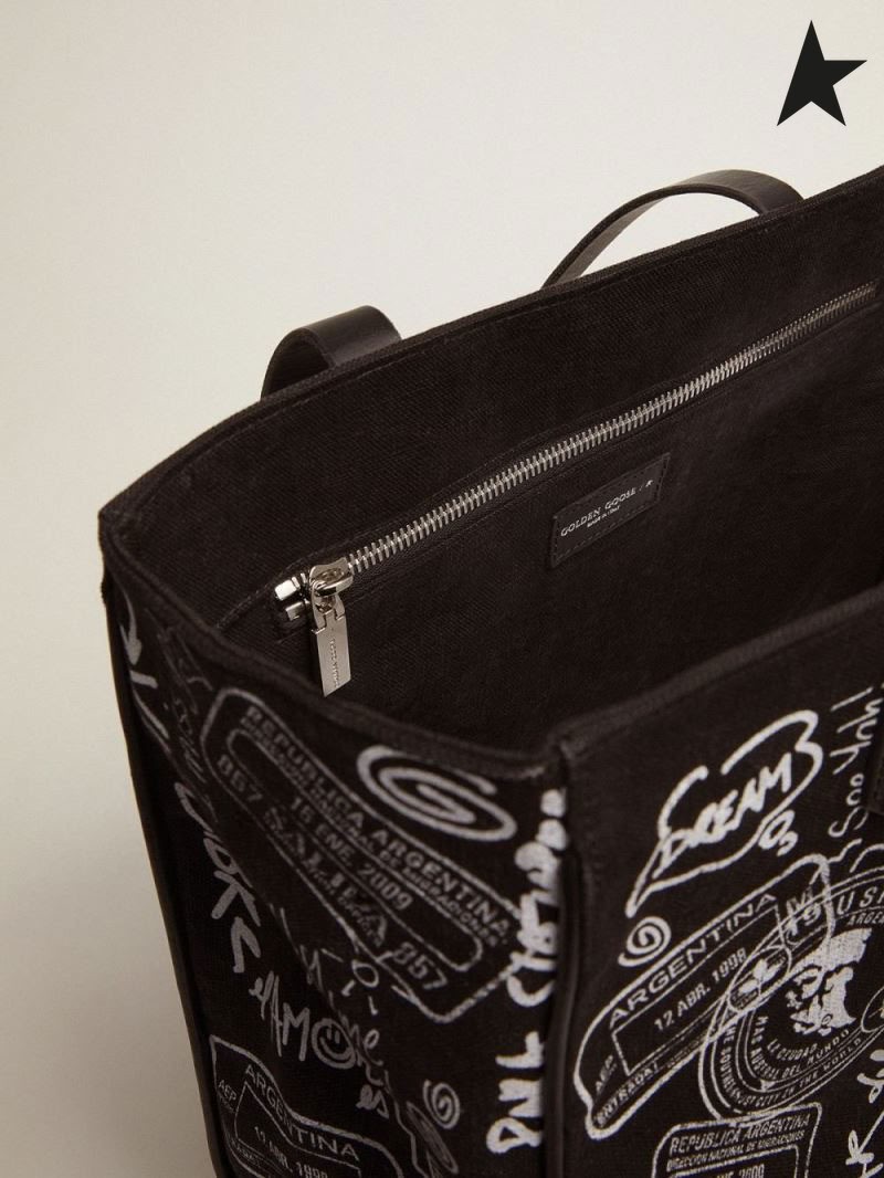 Golden Goose Est-Ovest, in California, Borsa in tela nera con graffiti caffè