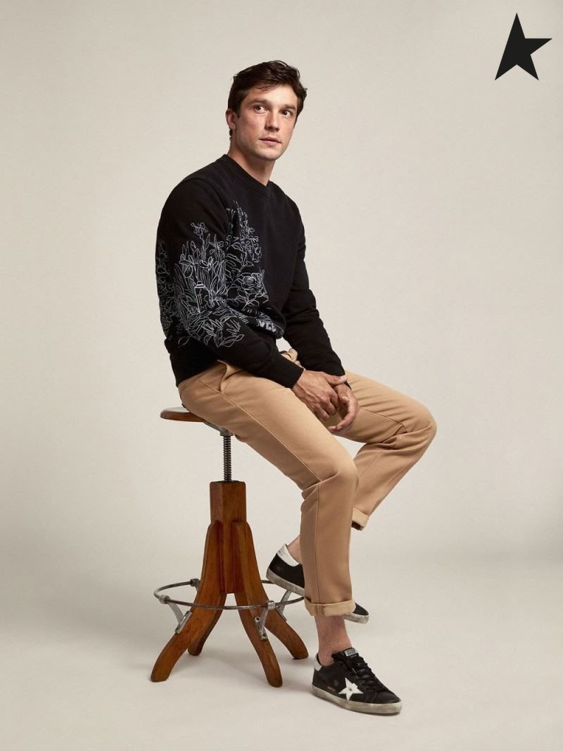 Golden Goose Nero Viaggio collezione Archibald felpa con contrasto ricamo bianco nero