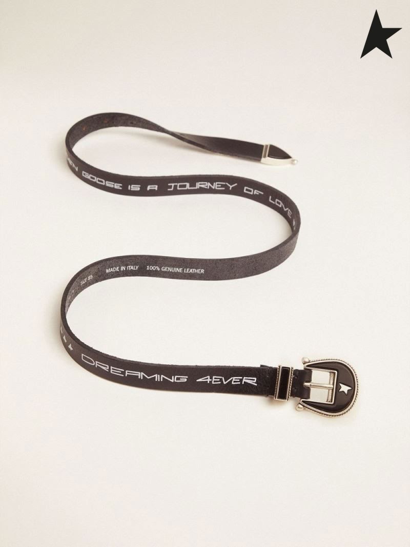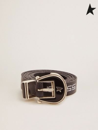 Golden Goose Rodeo cintura in pelle nera a contrasto, scritta a mano lettering nero