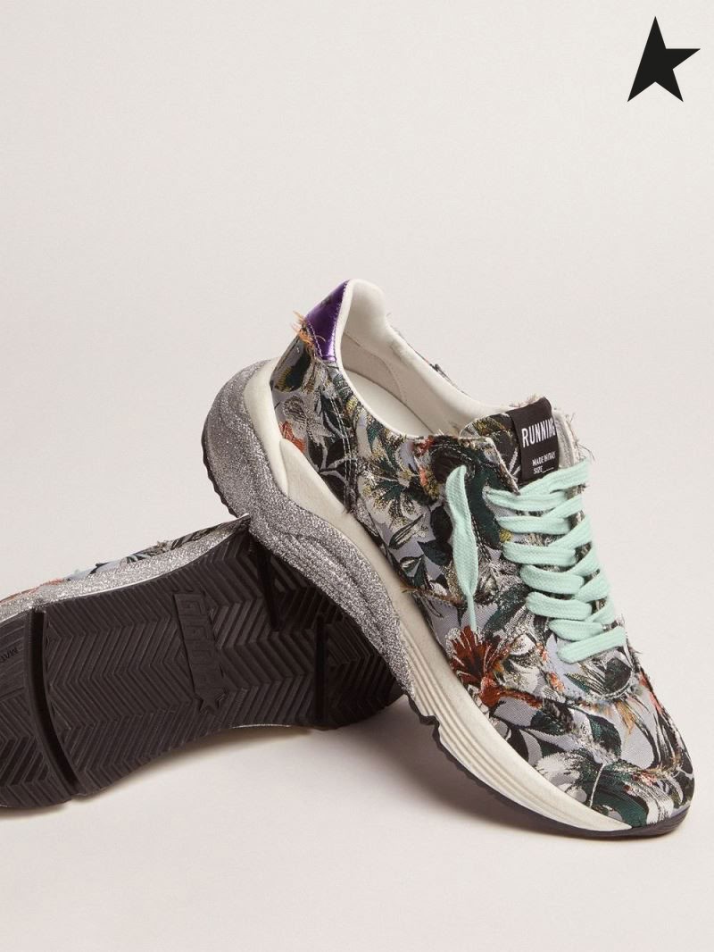 Golden Goose Scarpe da Corsa scarpe da ginnastica con la Suola jacquard floreale superiore argento viola verde