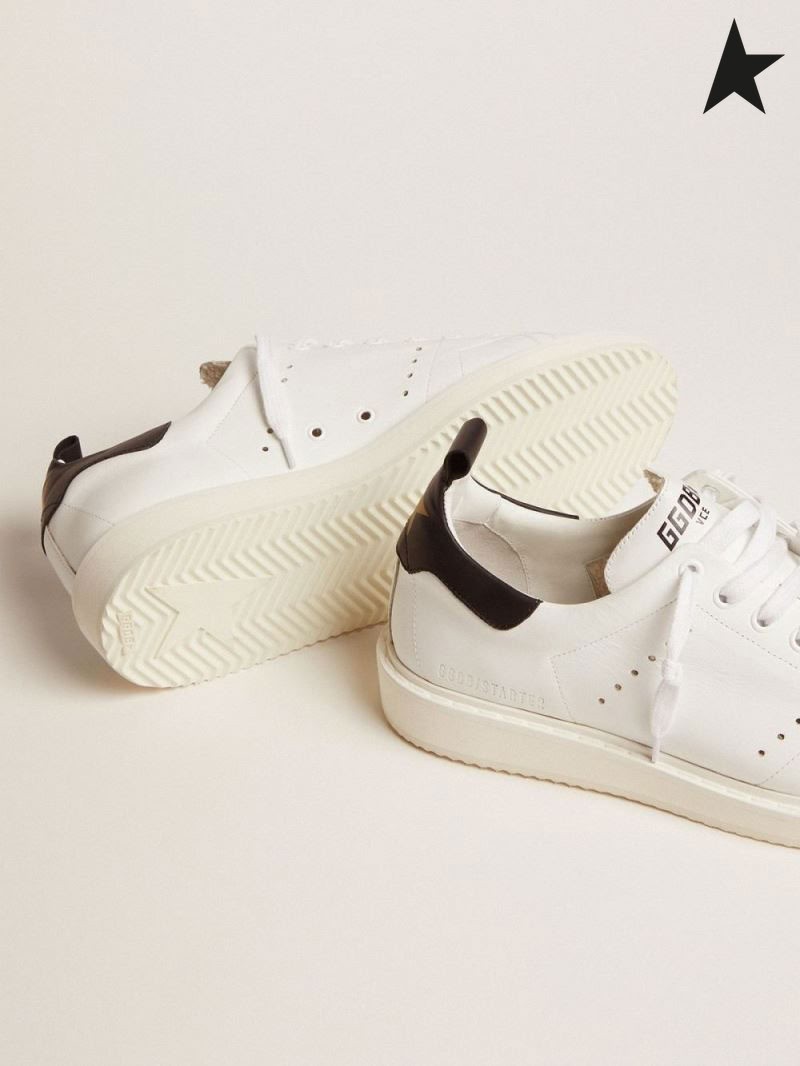 Golden Goose Starter sneakers in pelle nera con scheda di tacco nero rosso colore oro