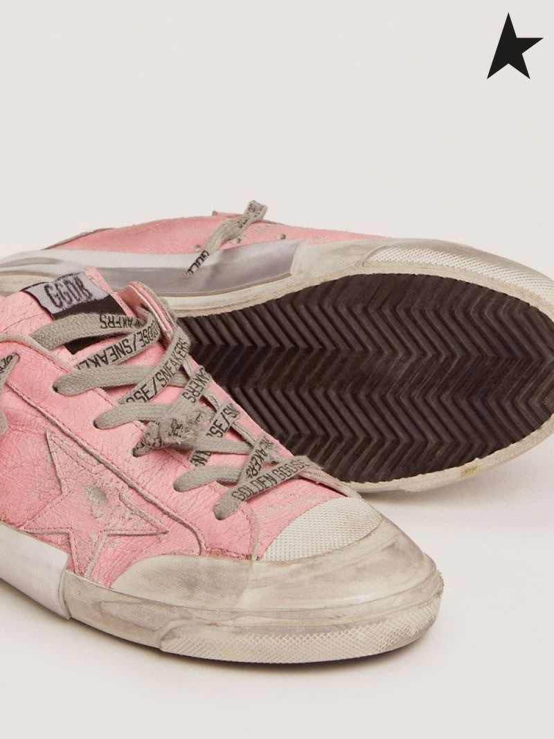 Golden Goose Super Star scarpe da ginnastica rosa crepitava in pelle e multi-foxing rosa Multicolore rosa