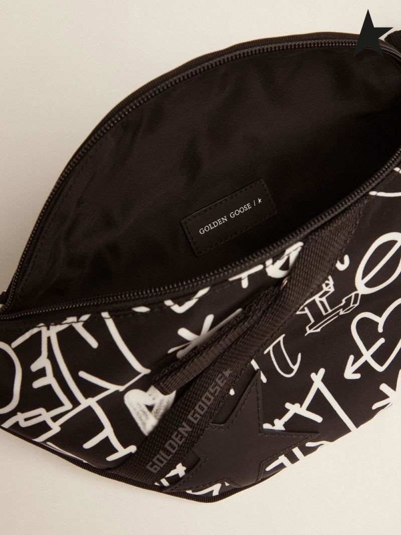 Golden Goose Viaggio cintura borsa in nylon nero con decorazioni bianche a contrasto