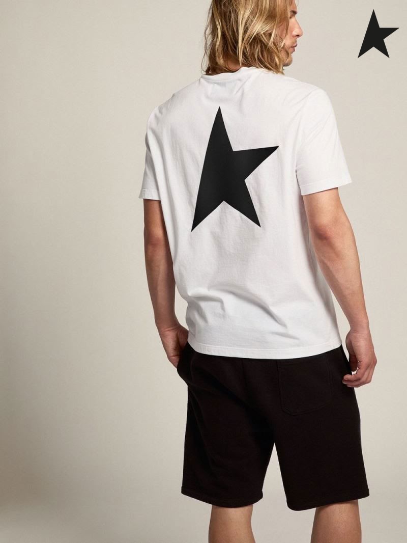 Golden Goose White Star collection T-shirt with contrasting black logo and star white