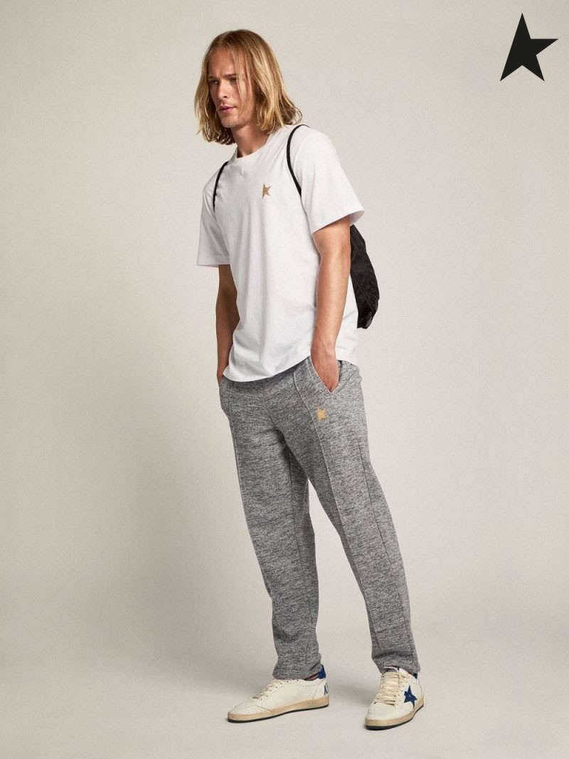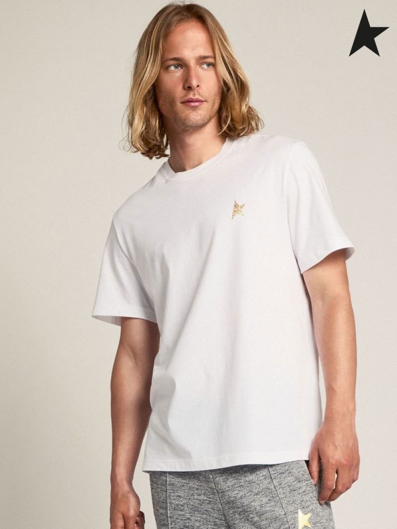 Golden Goose White Star collection T-shirt with star in gold glitter on the front white