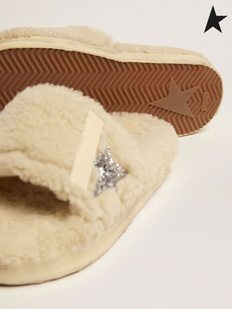 ゴールデングースベージュshearling Poolstarsスニーカーのシルバーキラキラタベージュ銀ベージュ