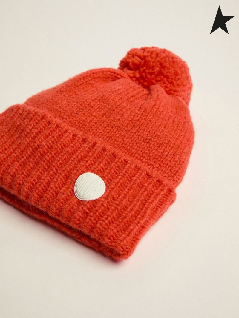 ゴールデングースオレンジのウール旅集Didiベレー帽とpompomオレンジ