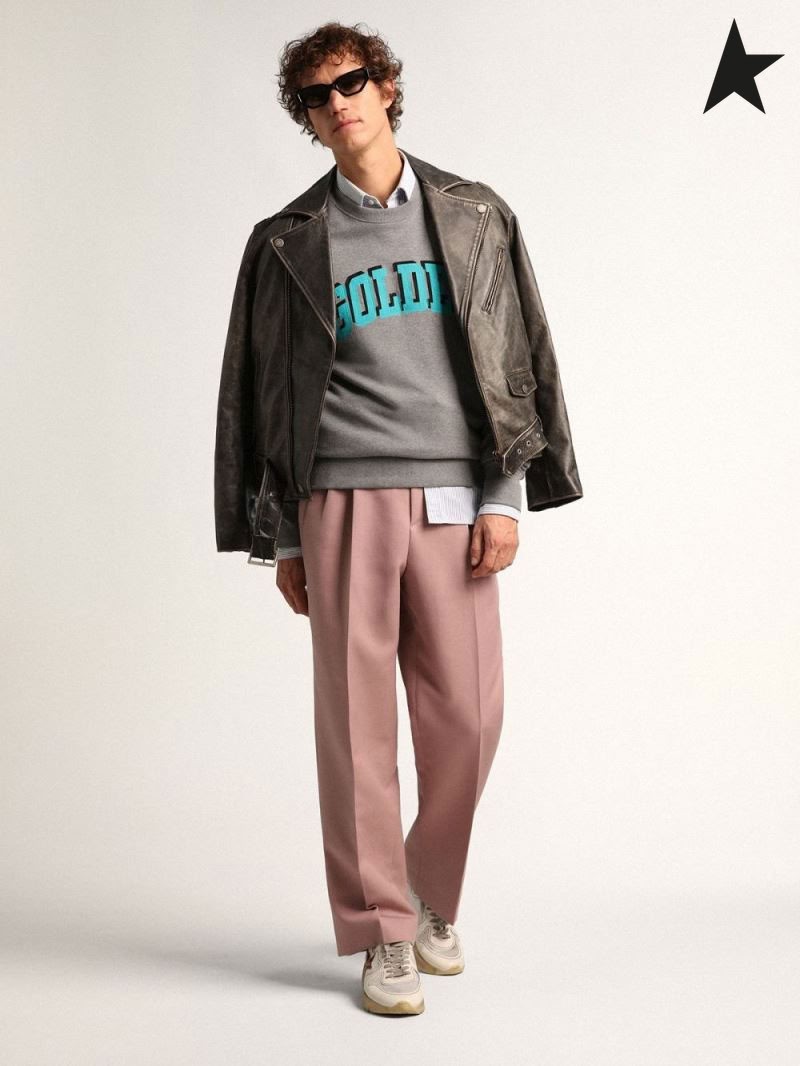 황금알을 낳는 거위 회색 여행 컬렉션 스웨트셔츠,콘트라스트는 청록색 황금 글자색