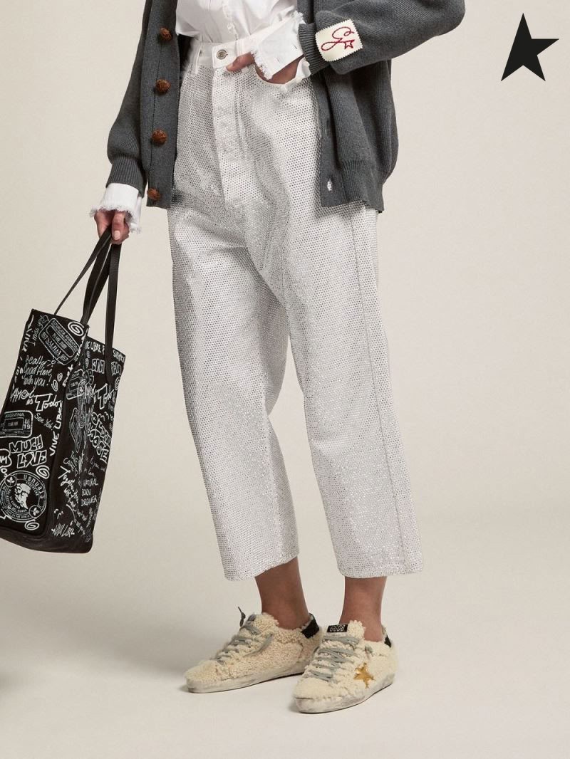 황금알을 낳는 거위원한 청바지와 모조 다이아몬드 화이트 실버