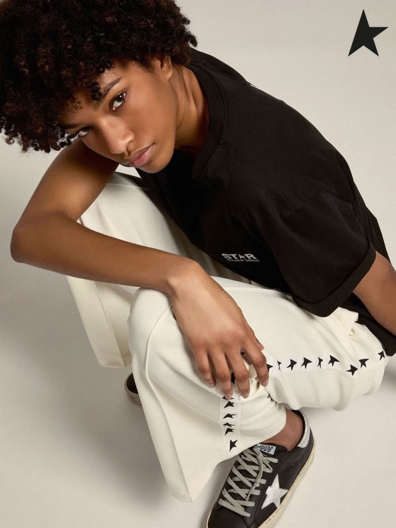 Golden Goose Black Star collection T-shirt met contrasterende witte logo en de ster zwart