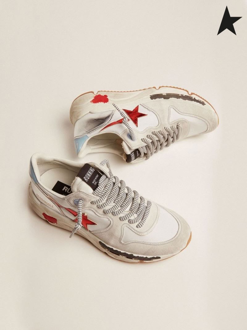 Golden Goose loopschoenen Enige sneakers in nylon en suède met rode gelaagd leer star wit grijs