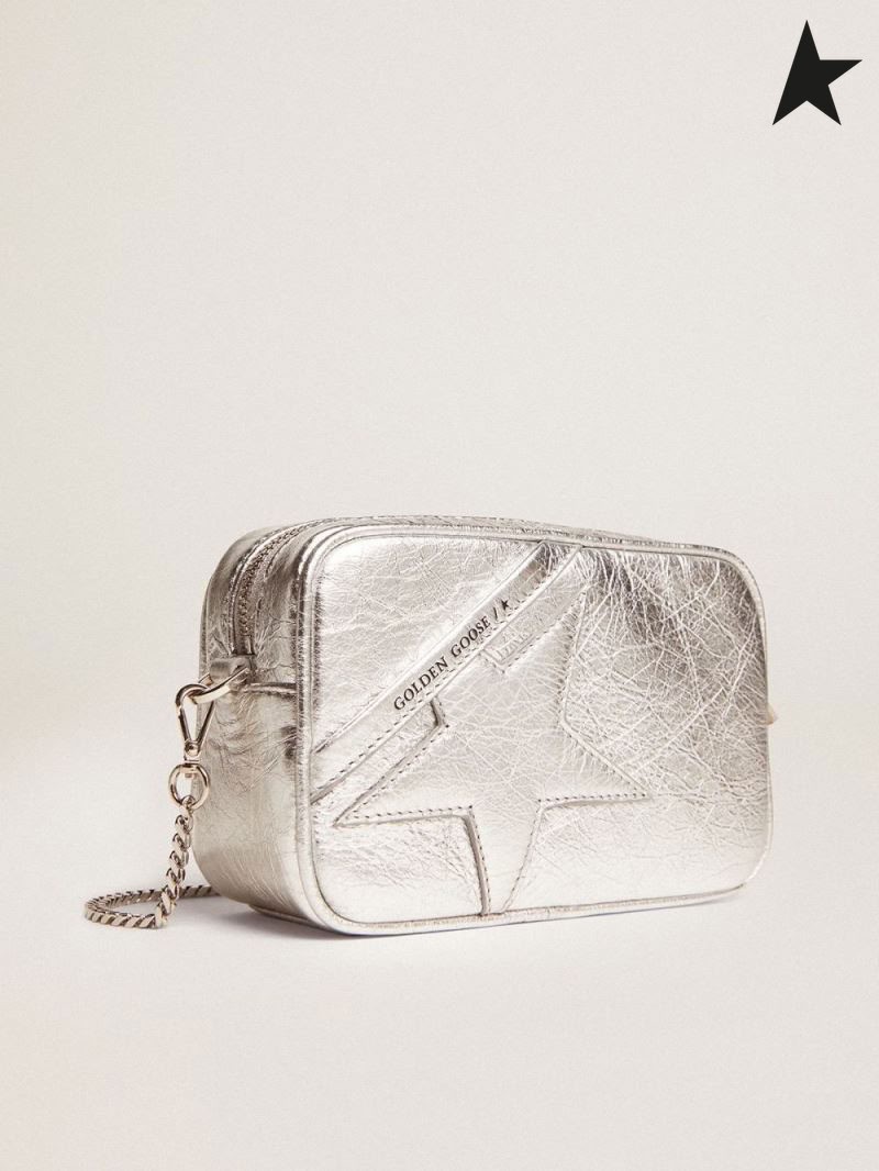 Golden Goose Mini Star Tas in zilver gelaagd leer met toon-op-toon ster zilver
