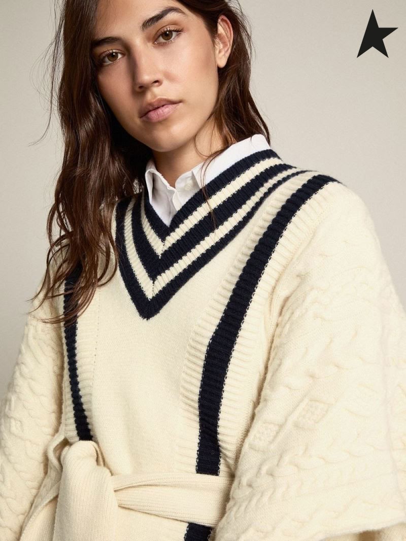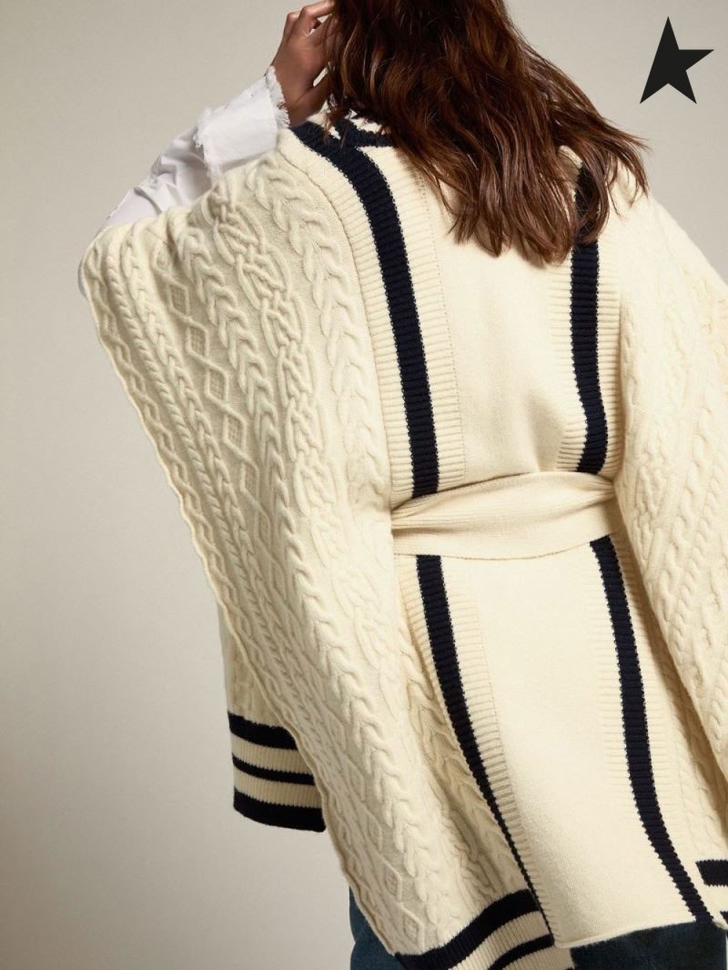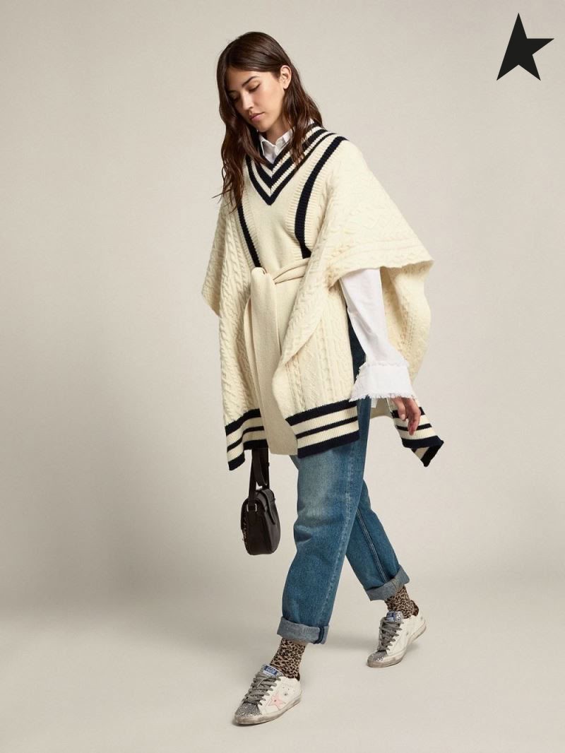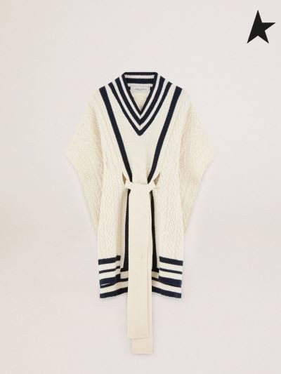 Golden Goose Oversize Reis verzameling Dane-kaap in natuurlijk wit-gekleurde wol met contrasterende blauwe details-wit