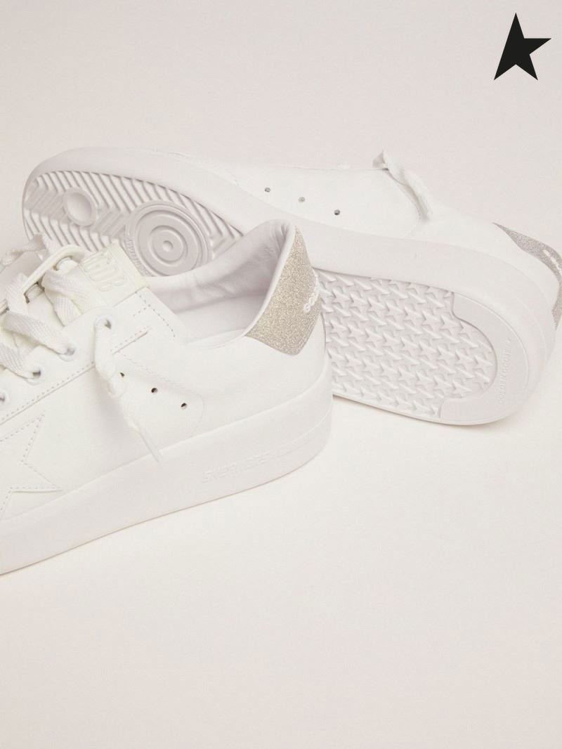 Golden Goose Purestar sneakers in wit leer met champagne glitter hak tabblad wit