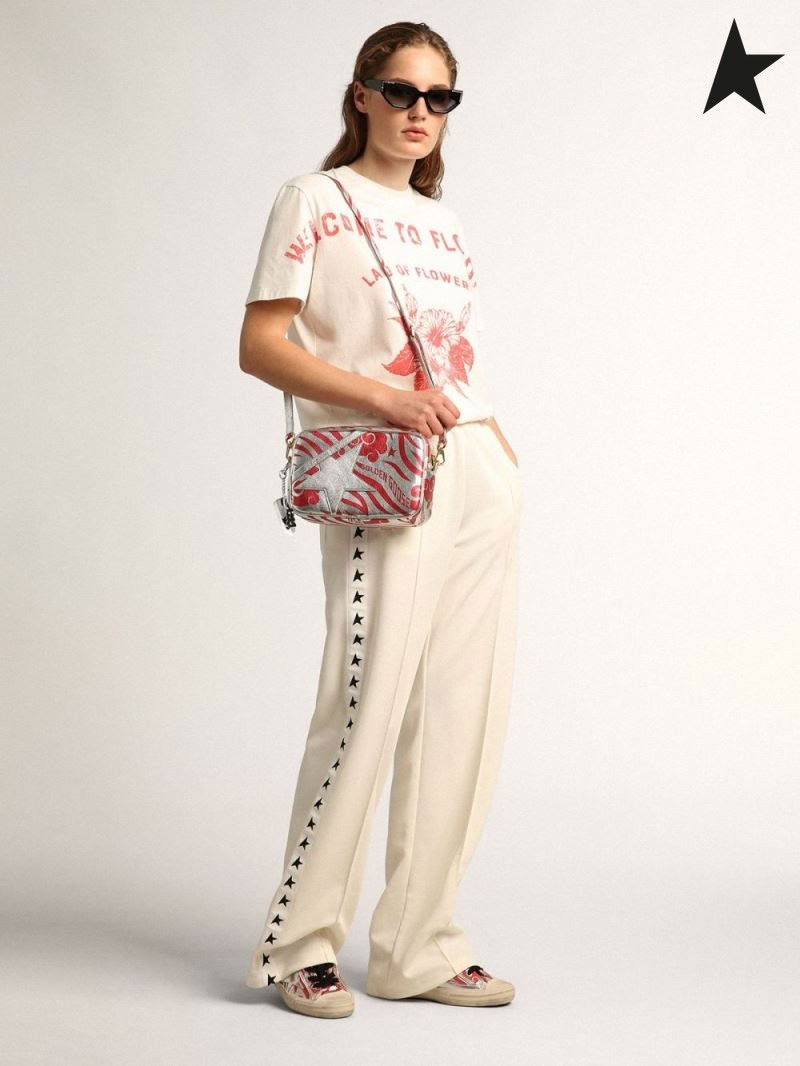 Golden Goose Sterren Tas in zilver gekleurd gelaagd leer met toon-op-toon sterren en rode tijger gestreept CNY afdrukken zilver rood