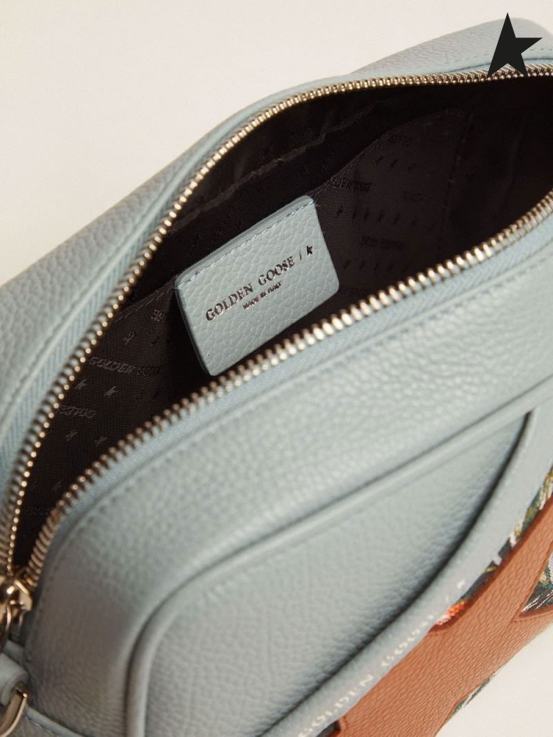 Golden Goose Celadon Stjerners Bag i hamret skinn med jacquard skrive ut og karamell-farget stjerners rød rød sølv