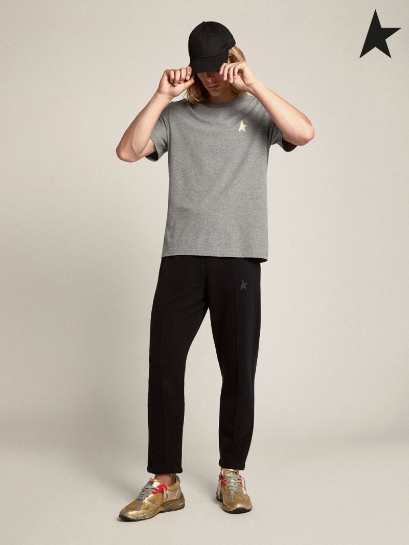Golden Goose grå Melange Stjerners collection T-skjorte med gull stjerne på front-grå