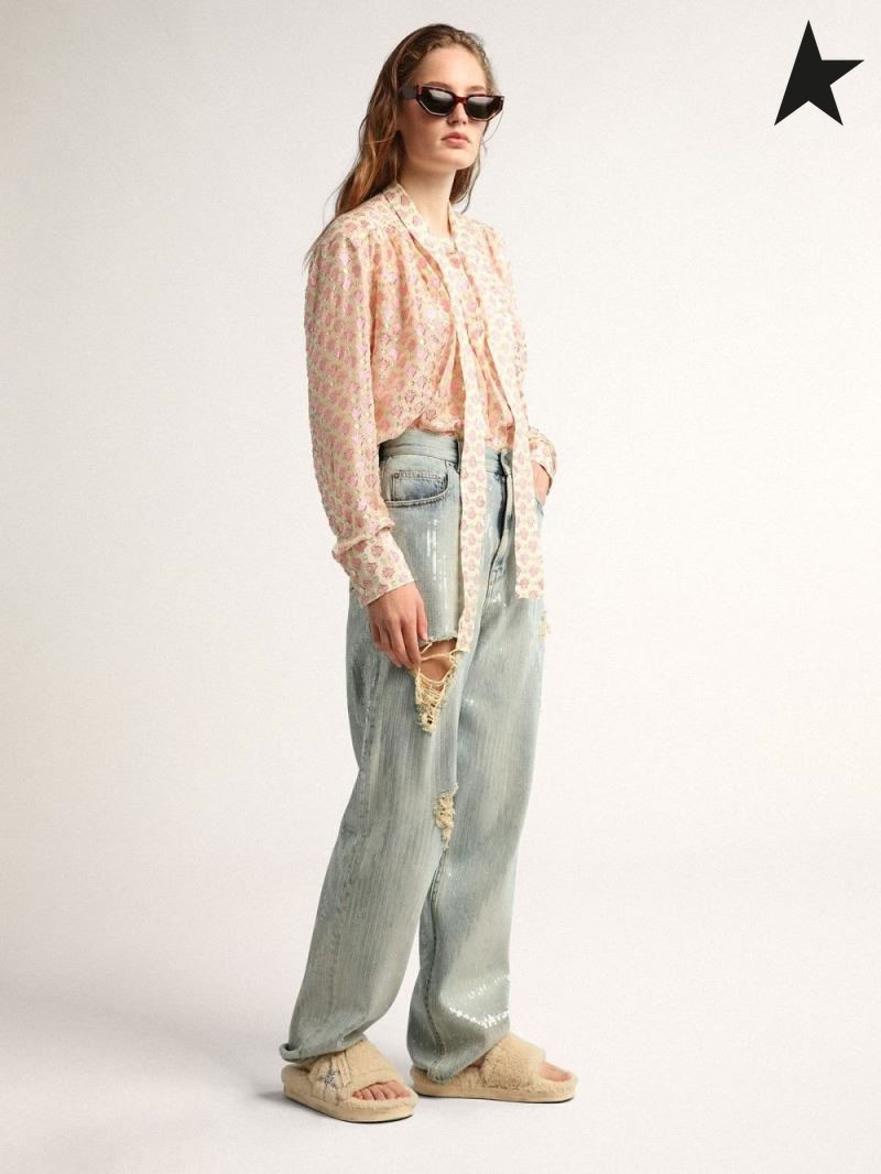 Golden Goose Pastell gul Reise collection skjorte med baugen på kragen og i Art Deco-stil plumetis print-gul