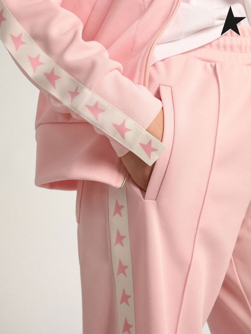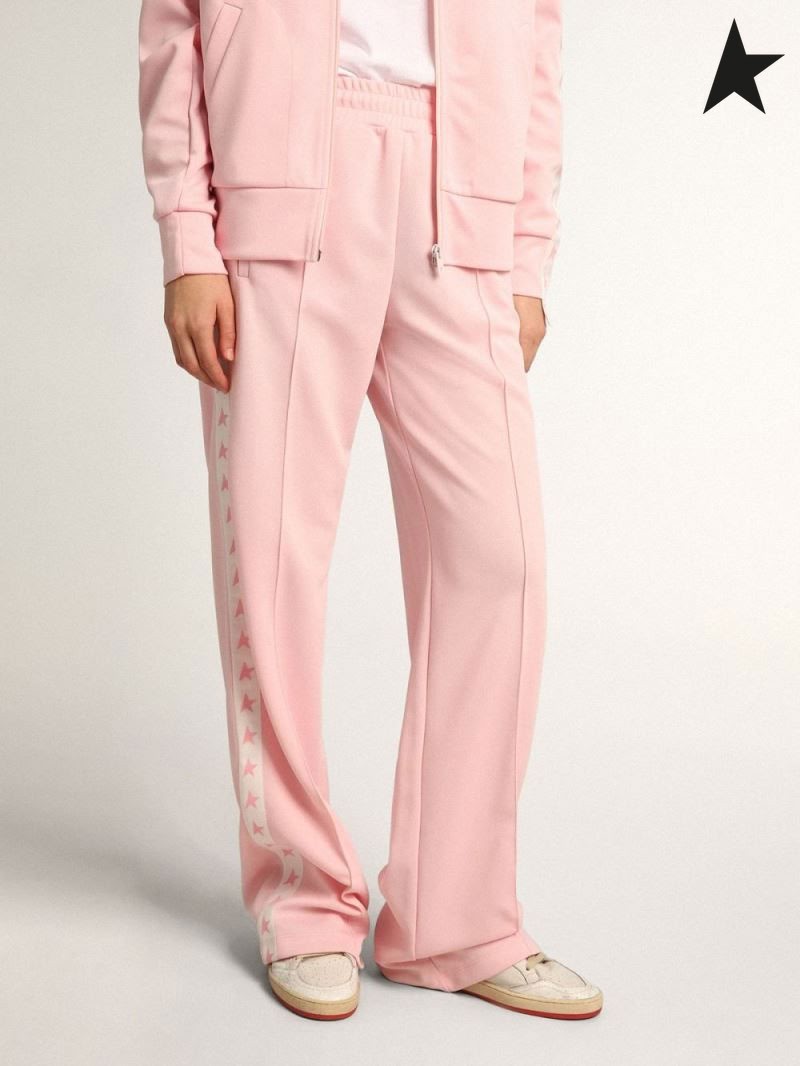 Golden Goose Pink Dorotea Stjerners samling jogge bukse med hvit stripe og rosa stjerner på sidene rosa hvit