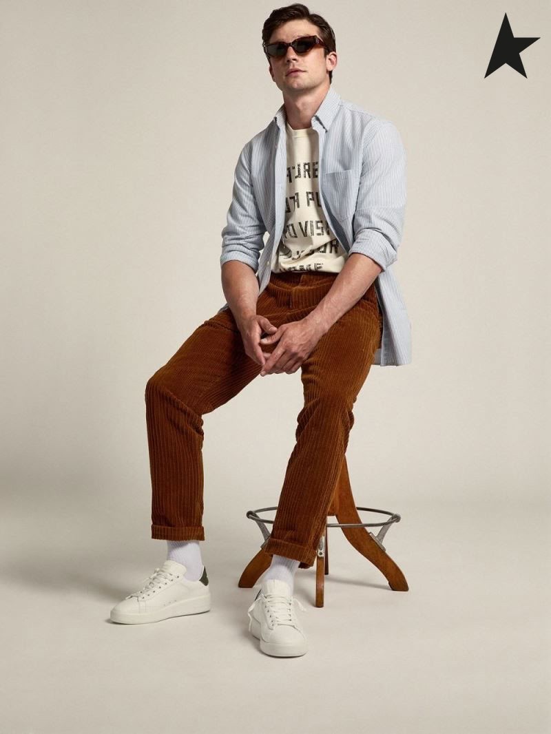 Golden Goose Purestar joggesko i hvitt skinn med grønn canvas hæl kategorien hvit